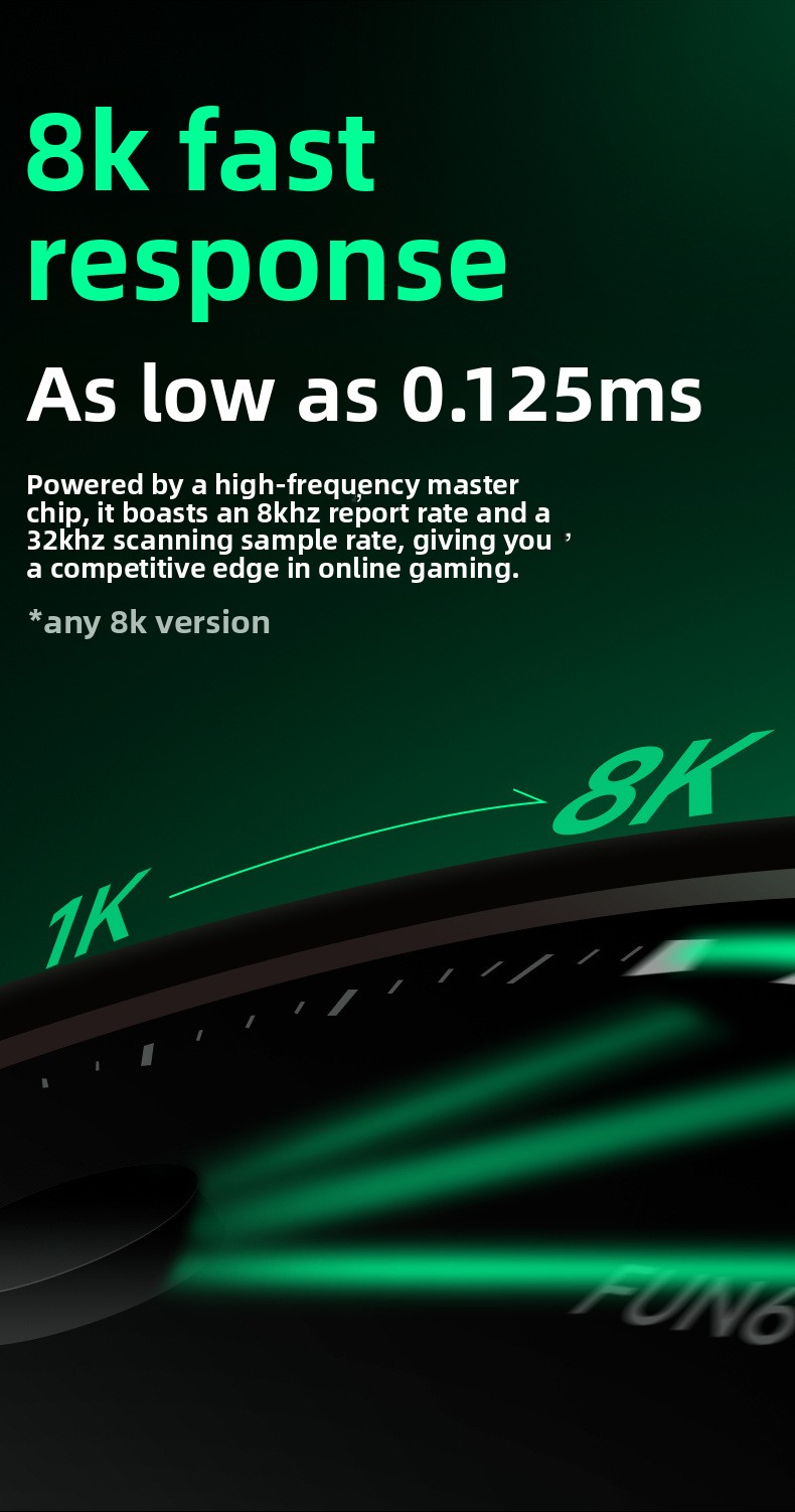Polling Rate: Up to 8000Hz (wired), 1000Hz (wireless)